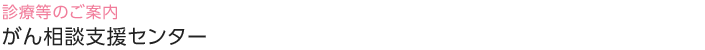 | 対面相談 | 8:15~17:00 (土日祝、年末年始を除く) ※管理棟1階「がん相談支援センター」にお越しください。 |